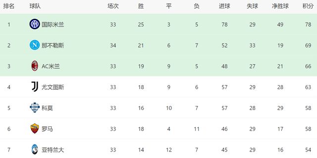 值得一提的是,随着那不勒斯获胜,他们和国米的差距也缩小到9分,这也意味着哪怕国米本轮在客场击败都灵,把优势重新拉大到12分,在交战成绩不占优势的情况下,他们没能提前4轮夺冠。现在来看,国米最快也要等到下轮主场对阵帕尔马,才能锁定冠军。