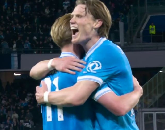 上半场仅仅开始3分钟,那不勒斯就已经取得领先。主队反击,德布劳内斜塞找到麦克托米奈,接球调整后,他果断起脚远射,最终把球打进。看到德布劳内和麦克托米奈在场上紧紧相拥庆祝,相信曼城和曼联球迷都恍如隔世,原本效力英超同城死敌的他们,在那不勒斯成为最亲密的战友。之后那不勒斯继续狂攻,半场结束前,霍伊伦德制造了客队的乌龙,再加上德布劳内进球,那不勒斯3-0领先,比赛提前失去悬念。下半场,桑切斯低射破门,比分锁定为4-0。